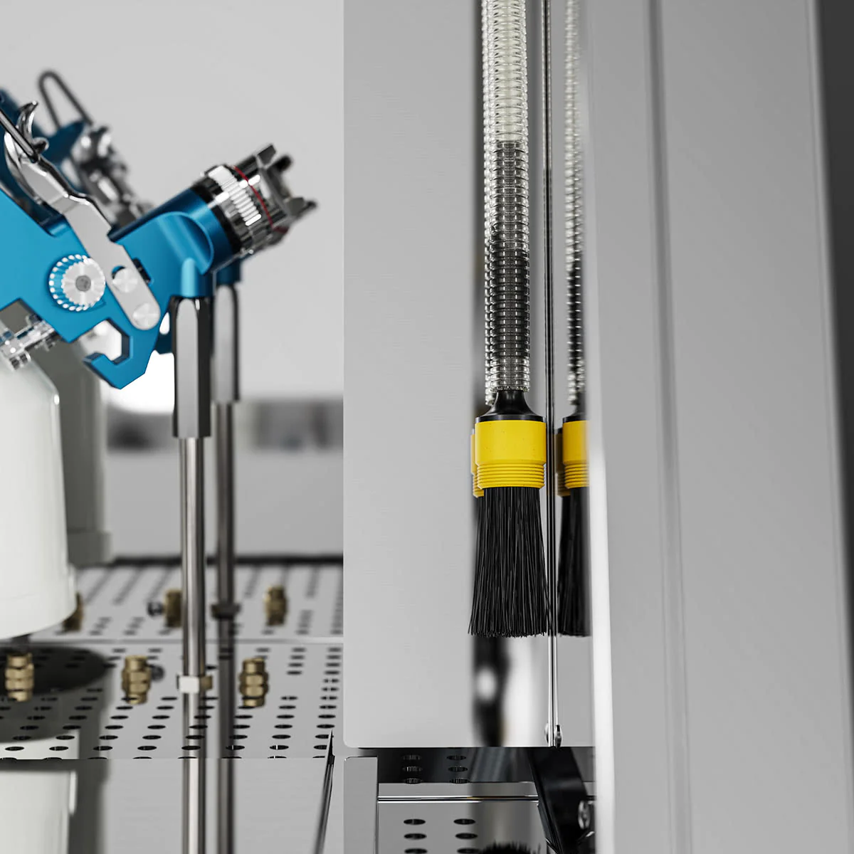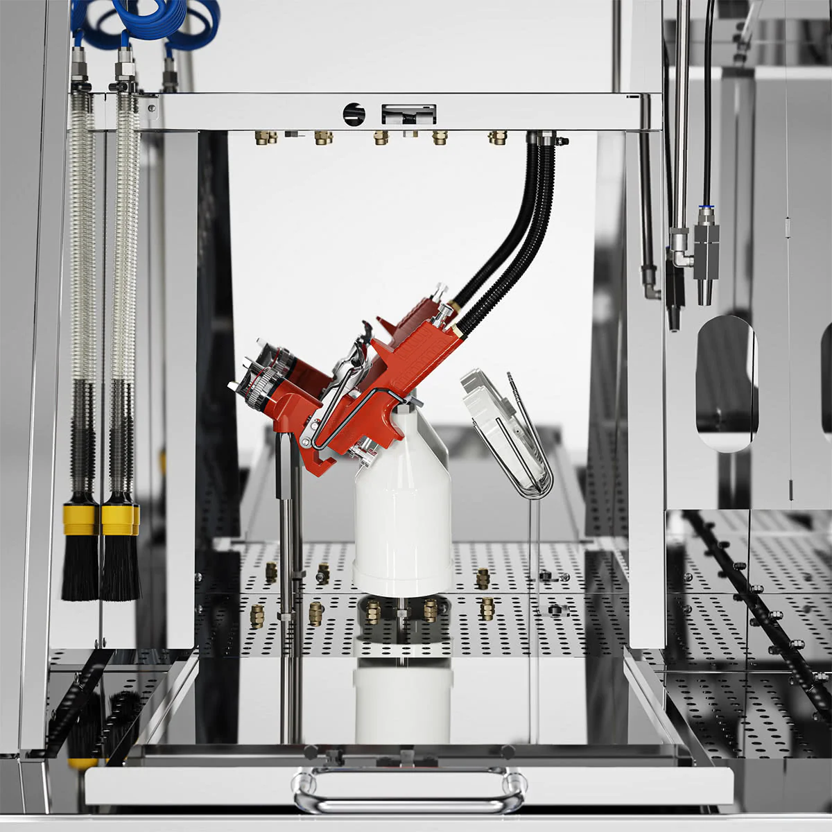 - dichtschließende Luftdurchflutung der Pistolen während der automatischen Reinigung