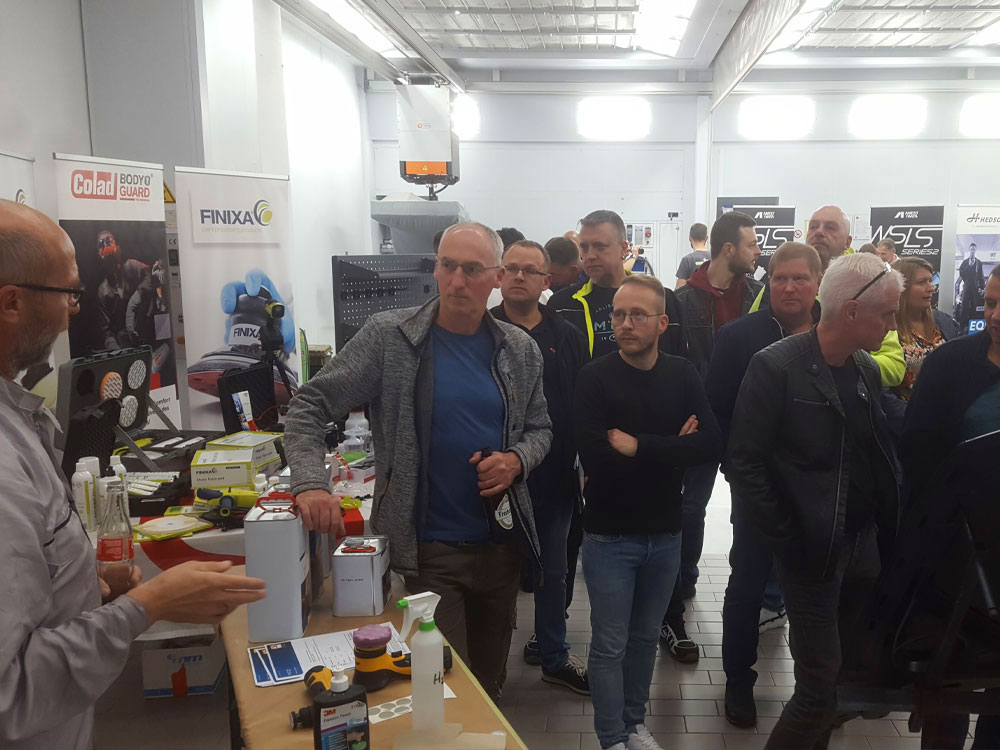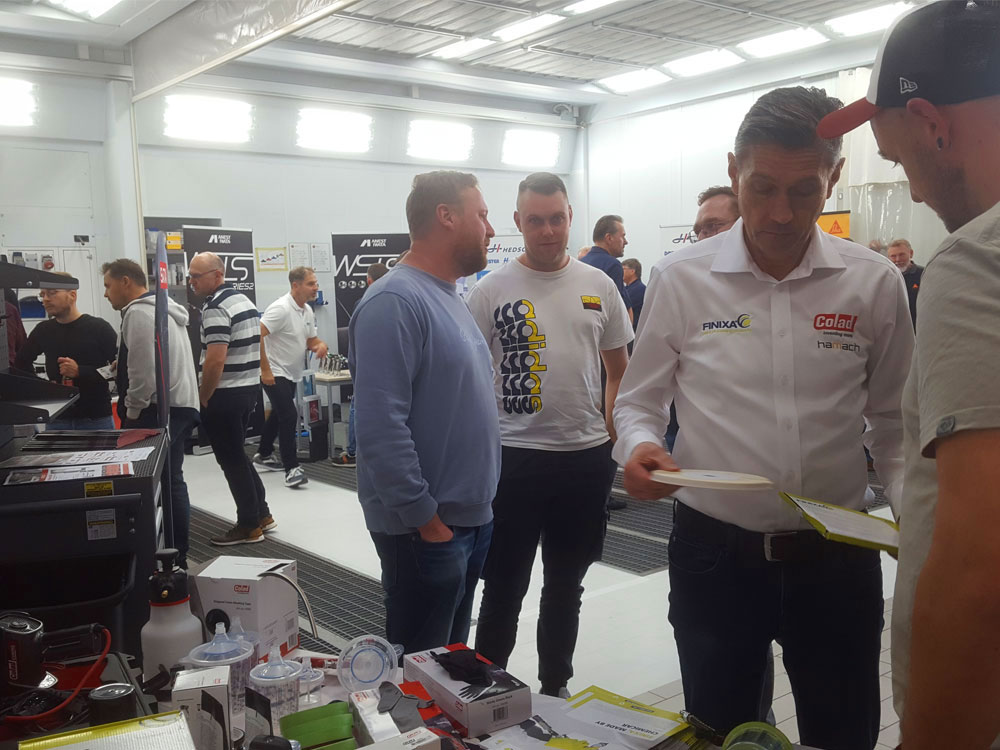 Besonders auffällig dieses Jahr war die vergleichsweise starke weibliche Präsenz unter den Gästen. Besonders viele junge Frauen, darunter Azubis aus dem Lackierhandwerk, fanden den Weg zum Stammtisch und wurden von ihren Ausbildern in hohen Tönen für ihr Engagement und ihre Leistung gelobt. Das Lackierhandwerk entwickelt sich erfreulicherweise immer mehr zu einem attraktiven Berufsfeld, das nicht nur Männer anspricht. Besonders bei Colad gab es viel Neues zu sehen: Durch die Integration des Herstellers Finixa ins Sortiment konnte Colad eine beeindruckende Reihe an neuen Verbrauchsmaterialien für das Lackierhandwerk vorstellen.