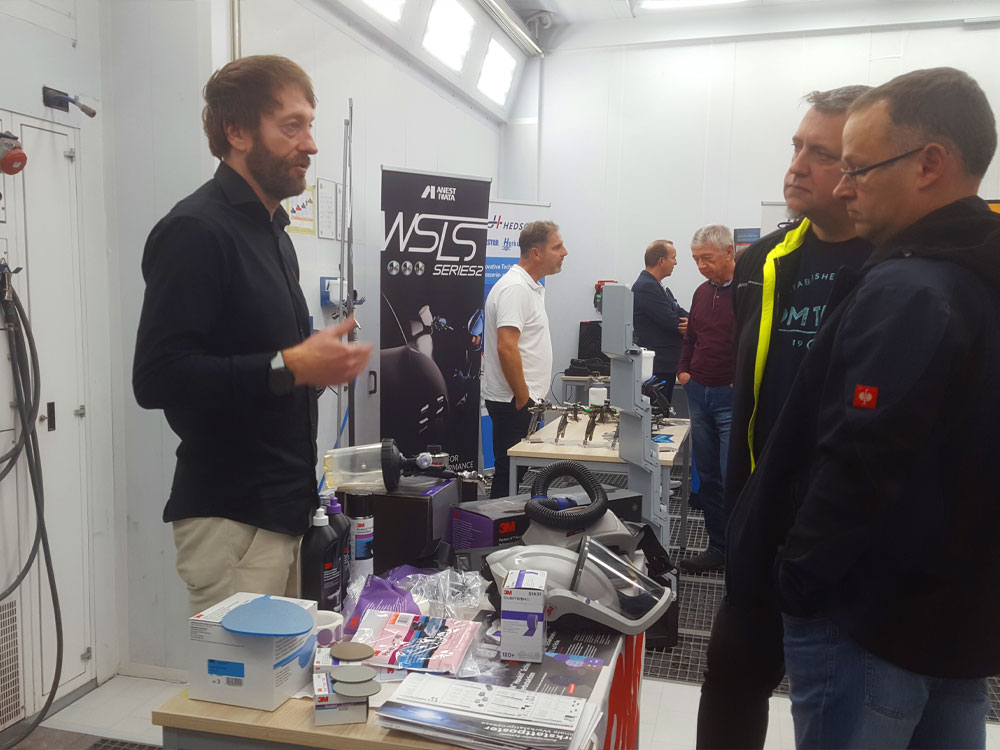 Anest Iwata stellte seine neuesten Modelle und Technologien vor. Hier stand die neue Lackierpistolen Serie WS-Primer, die es als Ausführung für die Applikation von Schleiffüllern und Nass-in -Nass Füllern verfügbar ist, im Vordergrund. Besucher konnten die Präzision und Qualität der Anest Iwata Lackierpistolen hautnah erleben und sich umfassend über deren Einsatzmöglichkeiten informieren.