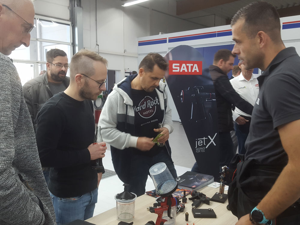 Sata hatte seine neue hochmoderne Lackierpistole jet X im Gepäck, welche ein ganz spezielles Werkzeug ist, in dessen Konzeption die umfassende Erfahrung im Lackierhandwerk und sogar Feedback von Lackierern selbst eingeflossen ist. SATA jet X - „Die Lackierpistole, die für dich arbeitet“ ist die digitalste SATA Lackierpistole aller Zeiten.