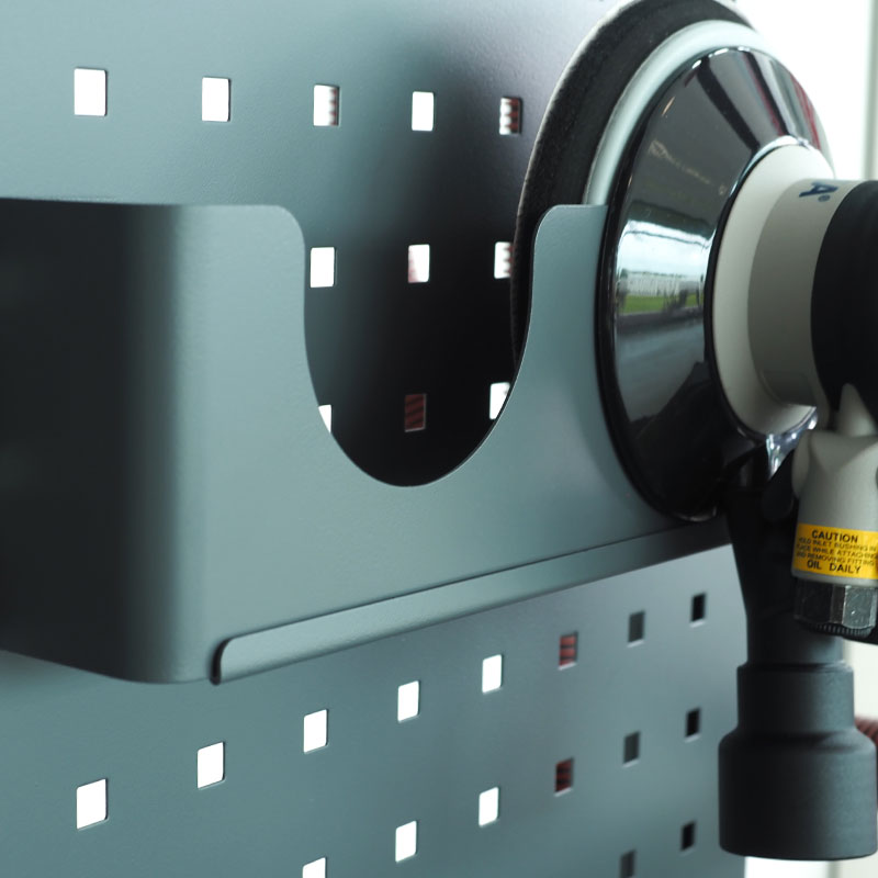 Sorgen Sie mit dem Maschinenhalter für mehr Ordnung in Ihrer Werkstatt und halten Sie Ihre Schleifmaschinen stets griffbereit. Der Halter bietet Platz für zwei Schleifmaschinen und passt perfekt auf eine Rasterplatte der Größe 9,0 × 9,0 × 38 mm. Dank der robusten Metallkonstruktion ist er langlebig und vielseitig einsetzbar. Mit einem Gewicht von nur 0,3 kg und kompakten Abmessungen (T 50 x H 90 x L 300) lässt er sich flexibel am Arbeitsplatz anbringen und hilft, Ihren Arbeitsbereich aufgeräumt und effizient zu gestalten.