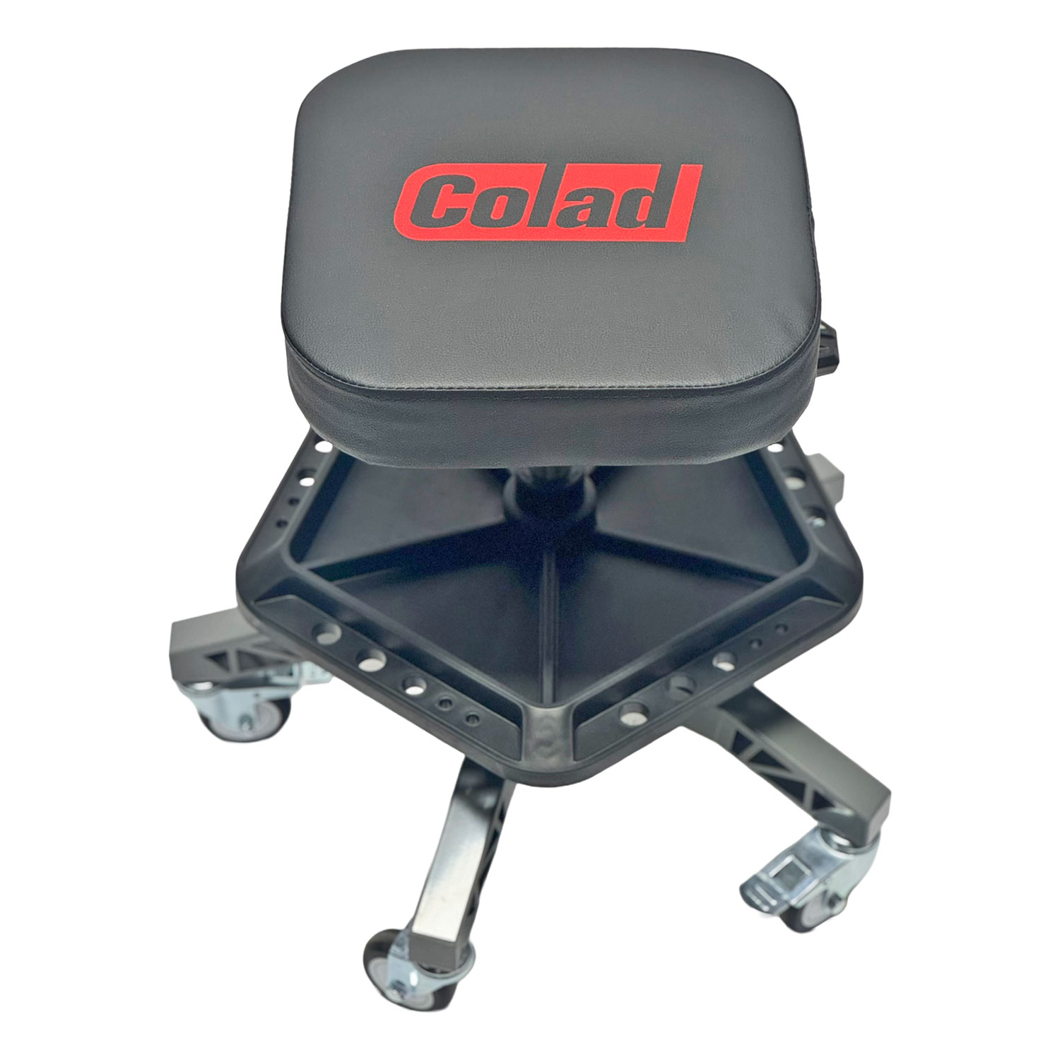 Die integrierte Werkzeugablage hält Ihre wichtigsten Werkzeuge immer in Reichweite, sodass Sie effizienter arbeiten können. Die robuste Konstruktion trägt bis zu 136?kg und bleibt dabei stabil und langlebig. Die großzügige, gepolsterte Sitzfläche mit Colad-Logo rundet das ergonomische Design ab.