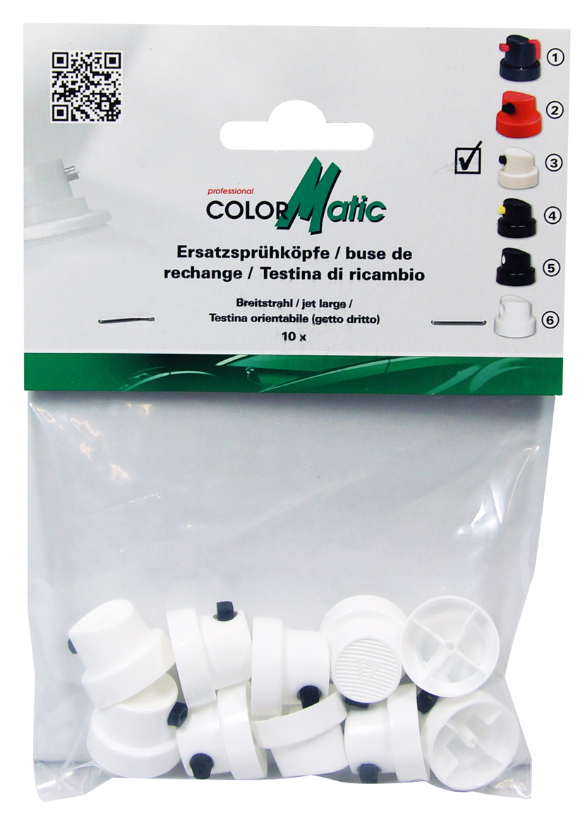 Die optimal aufeinander abgestimmte Ventil-/Sprühkopftechnik ist bei ColorMatic Spray-Produkten mit ein Grund, warum ein Sprühen wie mit einer Lackierpistole möglich ist. Sollte der Sprühkopf aus unvorhersehbaren Gründen einmal versagen, ist es ratsam, den passenden Sprühkopf zur Hand zu haben.