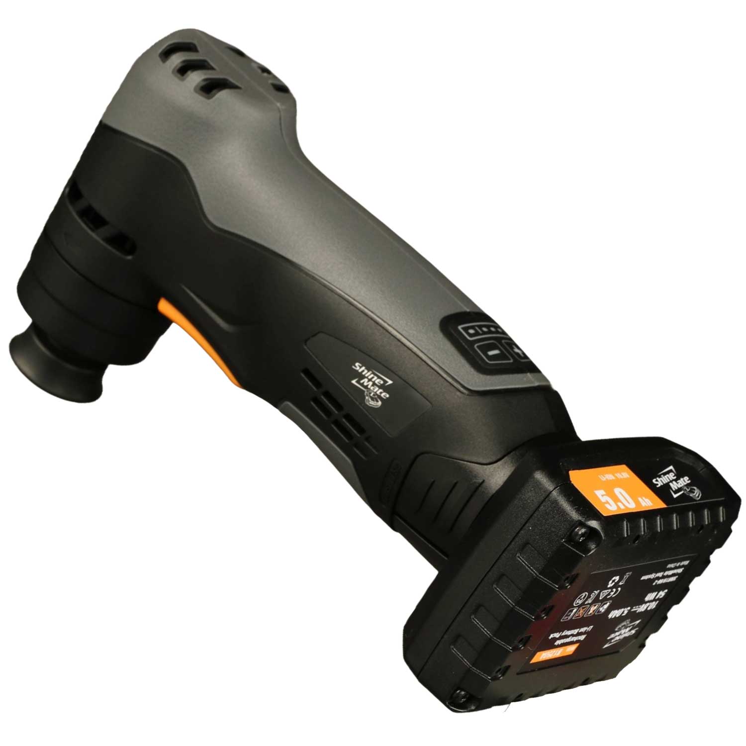 Mit diesem ShineMate Blütenschleifer Set erhalten Sie eine perfekt abgestimmte Kombination aus Maschine, Akku und Ladegerät für professionelle Detailarbeiten. Der EB201A-1/3 Blütenschleifer wurde speziell für Arbeiten auf kleinsten Flächen entwickelt und sorgt mit seinem 3 mm Exzenterhub und dem 31 mm Schleifteller für ein feines und kontrolliertes Schleifbild. Der leistungsstarke bürstenlose Motor arbeitet effizient, langlebig und liefert eine konstante Leistung. Über das integrierte Bedienfeld lässt sich die Drehzahl in 6 Stufen von ca. 4.000 bis 10.000 U/min einstellen, sodass die Maschine optimal an Material und Anwendung angepasst werden kann.