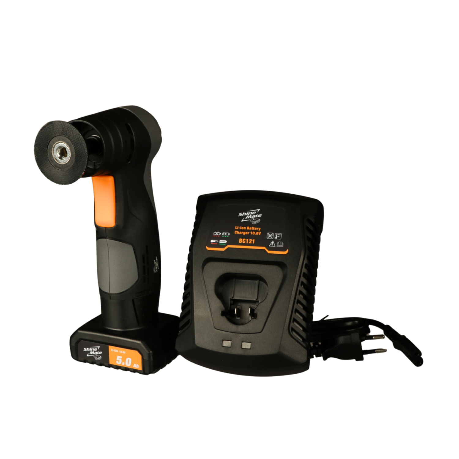 Im Set enthalten ist der ShineMate Akku B1250A mit 5,0 Ah, der im Vergleich zur 2,5 Ah Variante eine deutlich längere Laufzeit bietet und besonders für längere Arbeitseinsätze geeignet ist. Das BC121 Ladegerät lädt den Akku zuverlässig und sorgt für kurze Ladezeiten im Werkstattalltag.